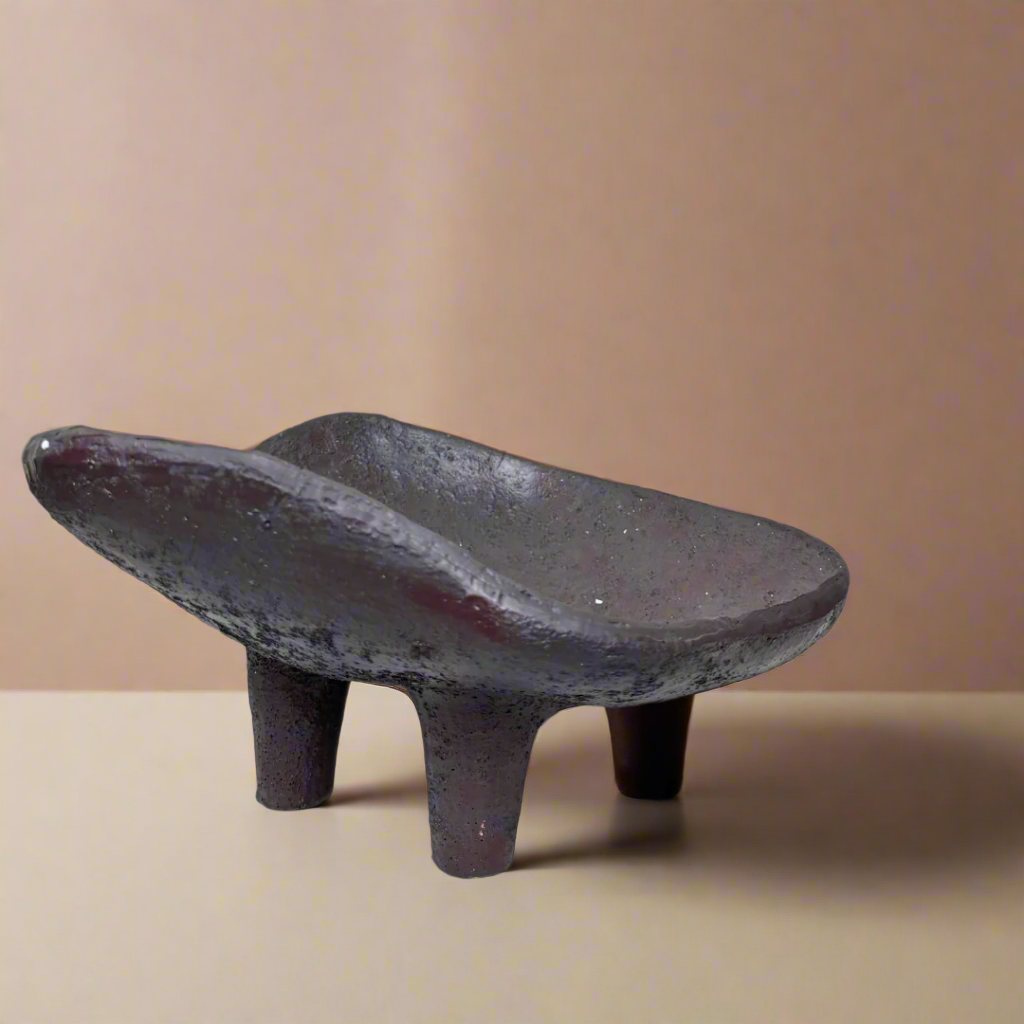 This simple 3-legged bowl is perfect for serving or displaying. With its unique design, it adds a touch of elegance to any table setting. Its durable construction ensures long-lasting use.