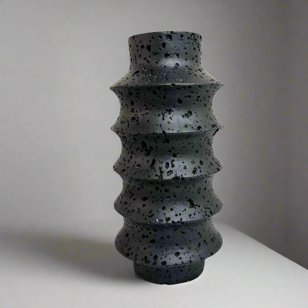 Upgrade your home decor with our elegant black ribbed vase. Its modern design adds the perfect touch of sophistication to any room. Made with high-quality materials, this vase is not only beautiful but also durable and long-lasting. Perfect for displaying your favorite flowers or as a standalone statement piece.