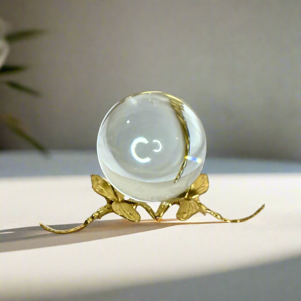 See into the future with our stunning crystal ball on a gold stand. This elegant piece will add a touch of magic to any room. Perfect for home decor or as a unique gift, this crystal ball also doubles as a conversation starter.