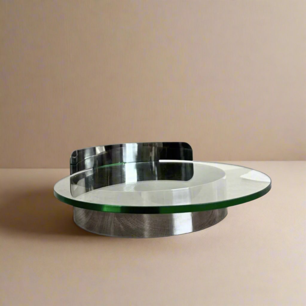This glass tray on metal stand is both practical and stylish. Its sturdy structure provides a secure place to display your items, while the glass surface adds a touch of elegance. Perfect for organizing and showcasing your belongings in any room.