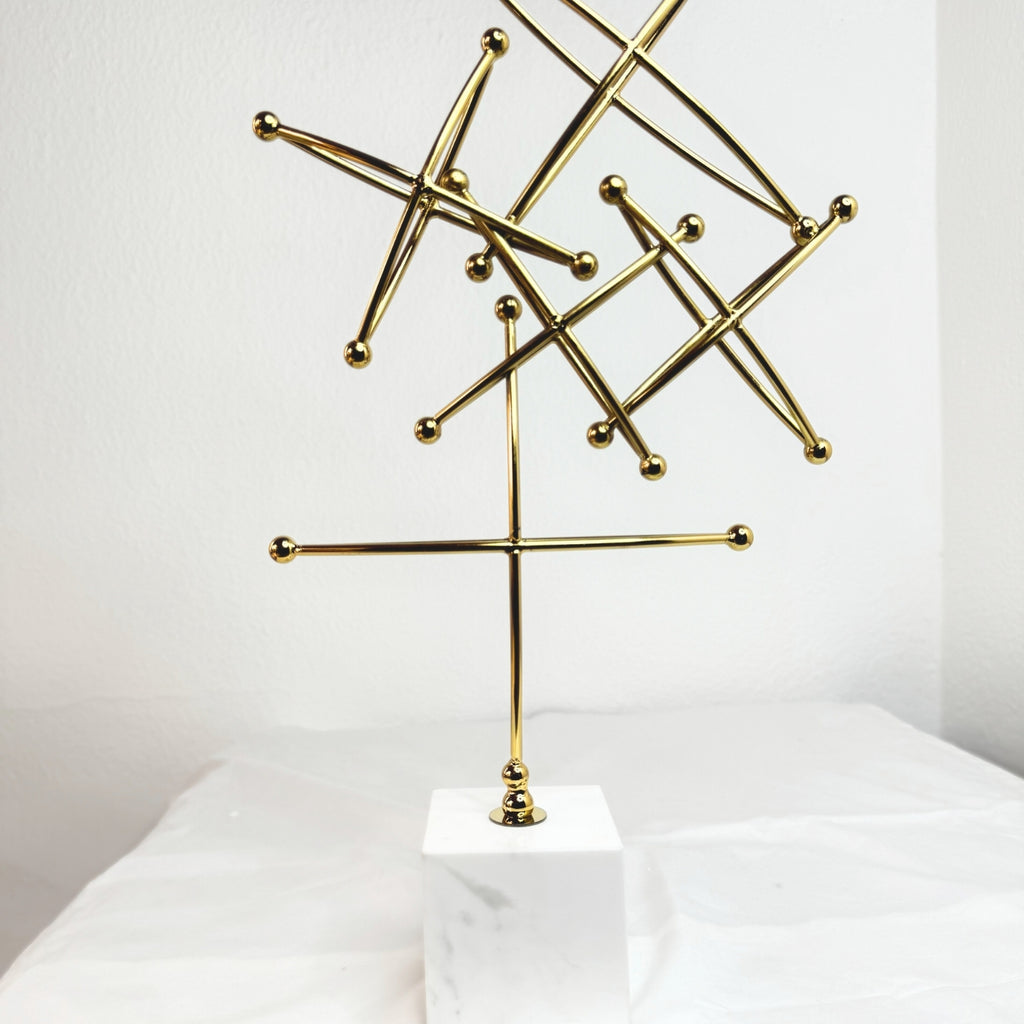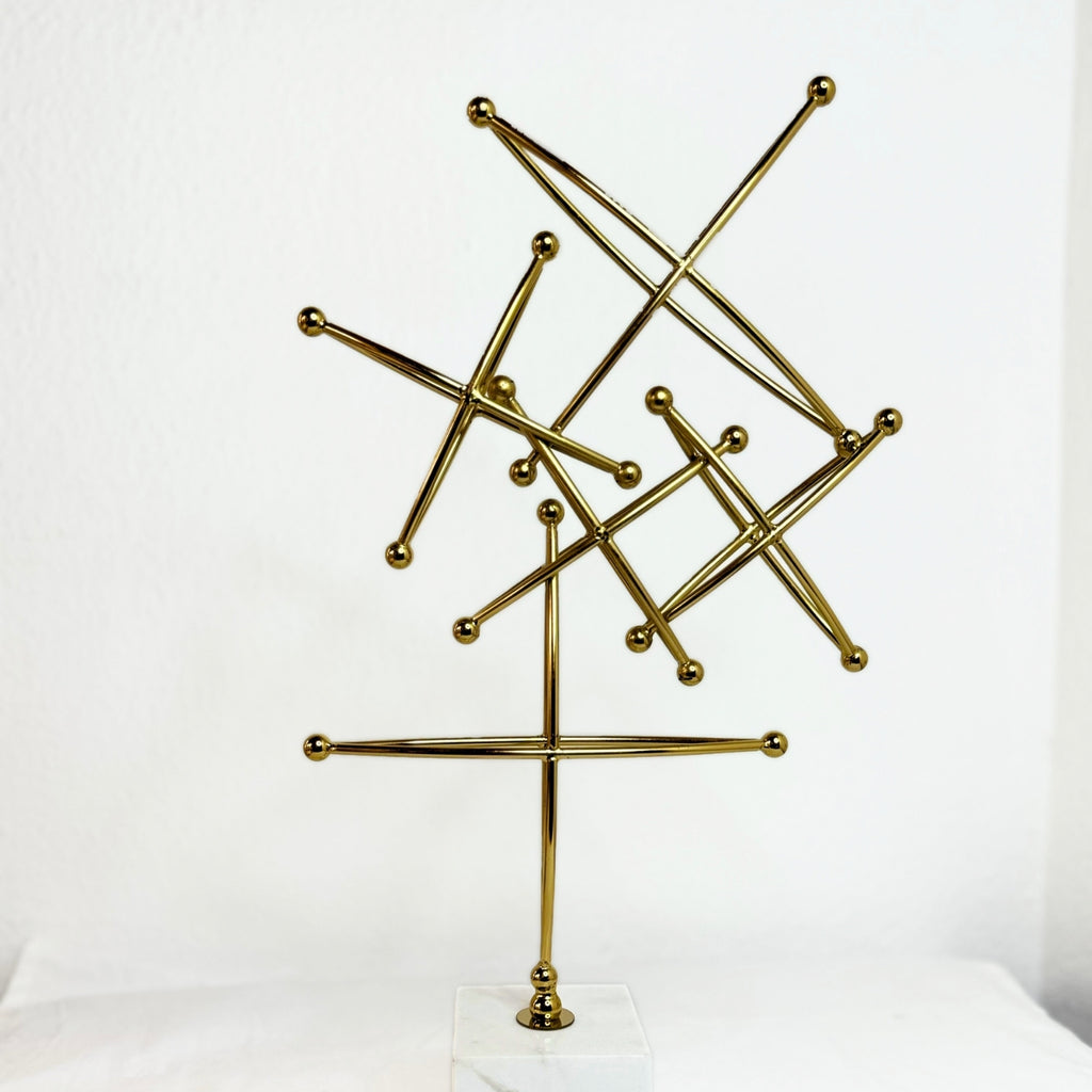 Enhance your home decor with this elegant gold ornament. Its intricate design and luxurious finish will bring a touch of sophistication to any room. The sturdy marble base ensures durability and stability, making it a perfect addition to your living space.