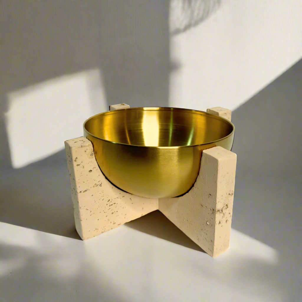 Elevate any room with this elegant gold vase, complete with a sleek stand for added style. Its eye-catching design adds a touch of sophistication to your décor while providing a sturdy base for your favorite flowers. A must-have for any modern home.