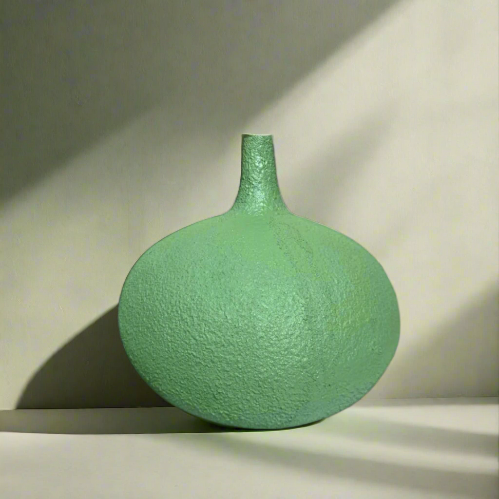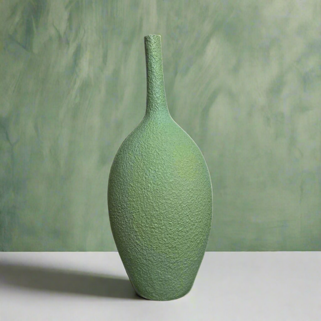 Elevate your home decor with our elegant green vase featuring a long neck. Its unique design adds a touch of sophistication to any room, making it the perfect accent piece for displaying flowers or standing alone. Enhance your space with this stunning vase that effortlessly combines style and functionality.