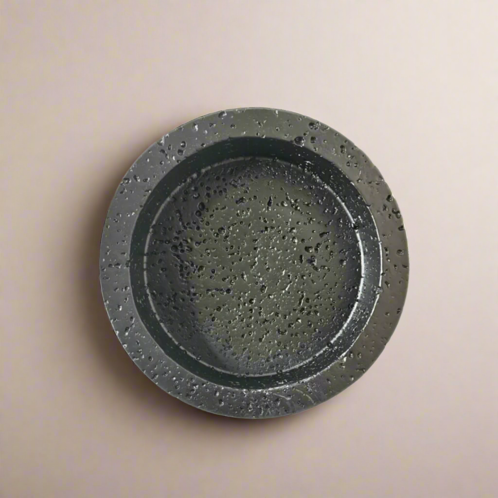 This heavy round centre decor plate adds a touch of elegance to any dining table. Its sturdy design and sleek appearance make it the perfect centerpiece for any occasion. Elevate your table setting with this high-quality decor plate.