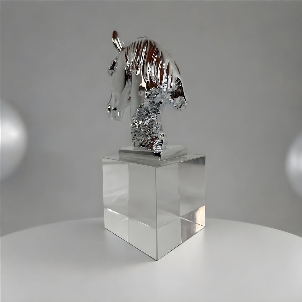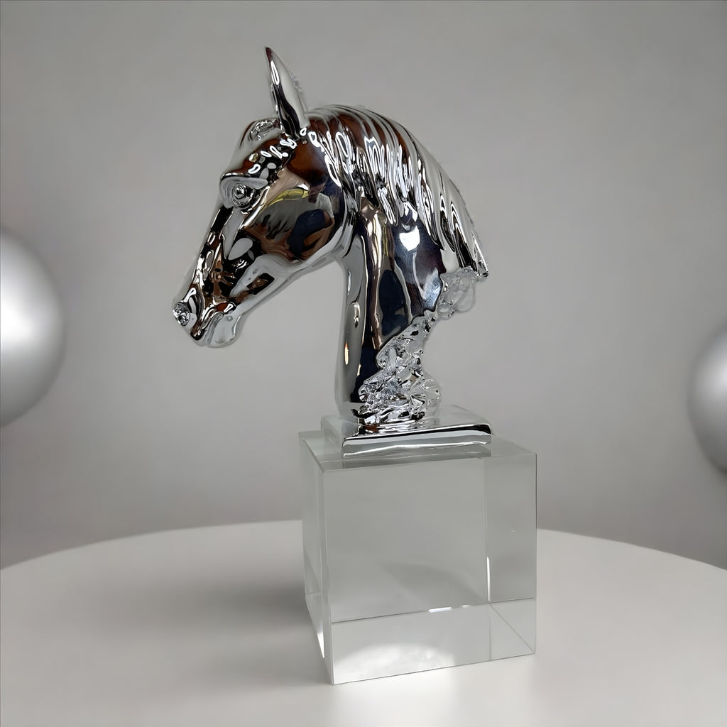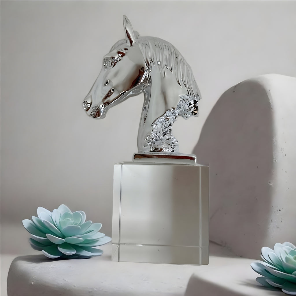This elegant horse head ornament features a sparkling crystal design, adding a touch of sophistication to any room. Perfect for horse lovers, this ornament makes for a unique and stylish decoration.
