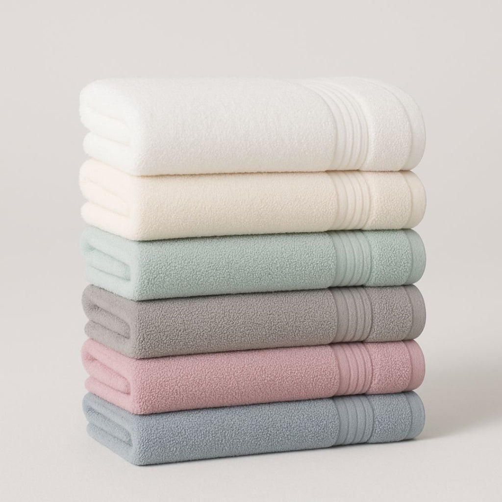 Experience the softness of INHOME towels made from imported Egyptian cotton yarn. Available in five gentle colors—cream, light blue, gray, green, and pink—these towels offer durable absorbency and a comfortable feel for everyday use. Perfect for adding a touch of color and quality to your bathroom.