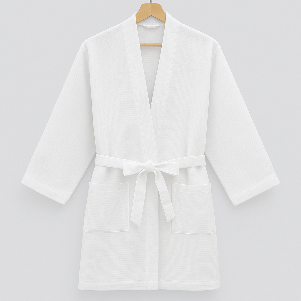 Made from 100% cotton waffle fabric, this bathrobe offers natural breathability and softness. Its shawl style design includes two convenient front pockets and a belt for a comfortable fit. The bathrobe comes packaged in a box and bag, making it easy to gift or store.