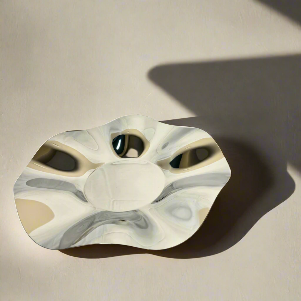 This large silver centre plate adds elegance and sophistication to any dining table. Made of high-quality silver, it is durable and long-lasting. Perfect for hosting guests or adding a touch of luxury to everyday meals.