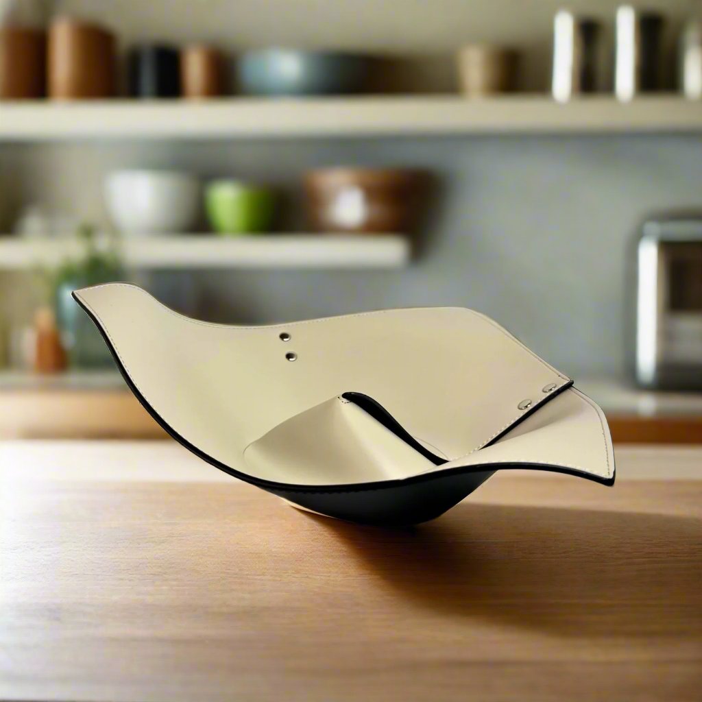 Introducing our Leather Fruit Bowl! Made from high quality leather, this elegant bowl serves as a stylish and functional addition to your home decor. Perfect for displaying your favorite fruits, this bowl adds a touch of sophistication to any table setting. Simple yet chic, it's a must-have for any modern household.
