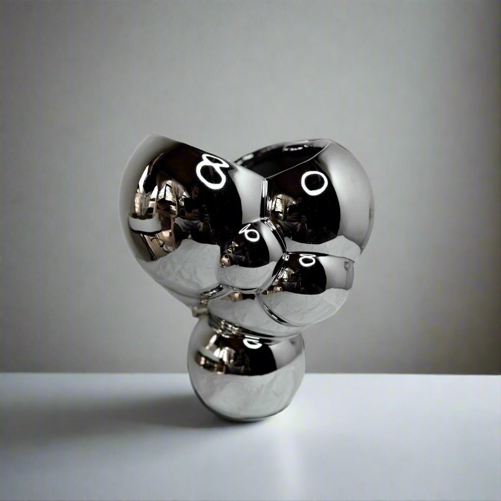 Add a touch of elegance to your home with our Silver Bubble Vase. The sleek silver design and unique bubble pattern make it a stylish addition to any room. Perfect for displaying your favorite flowers or as a standalone statement piece. Simple yet sophisticated.