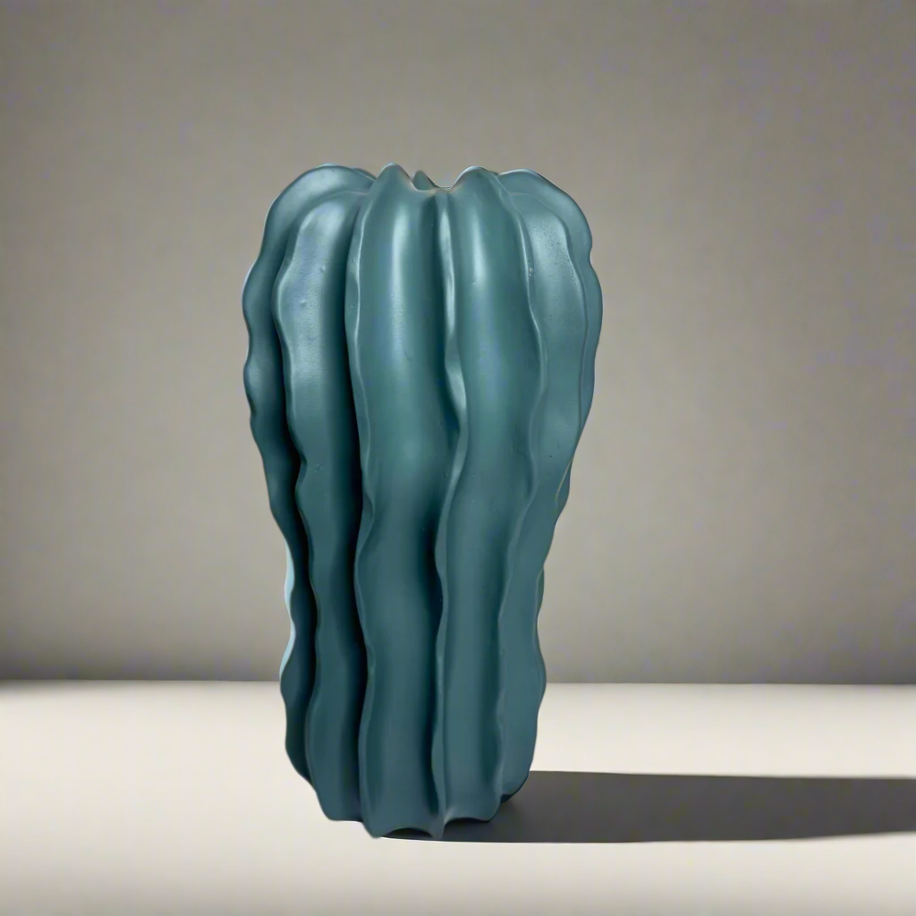 This elegant vase features unique wavey groves, adding a touch of sophistication to any room. Its sleek design allows for easy display of your favorite flowers, making it a versatile addition to your home decor. Bring some modern flair to your space with this vase.
