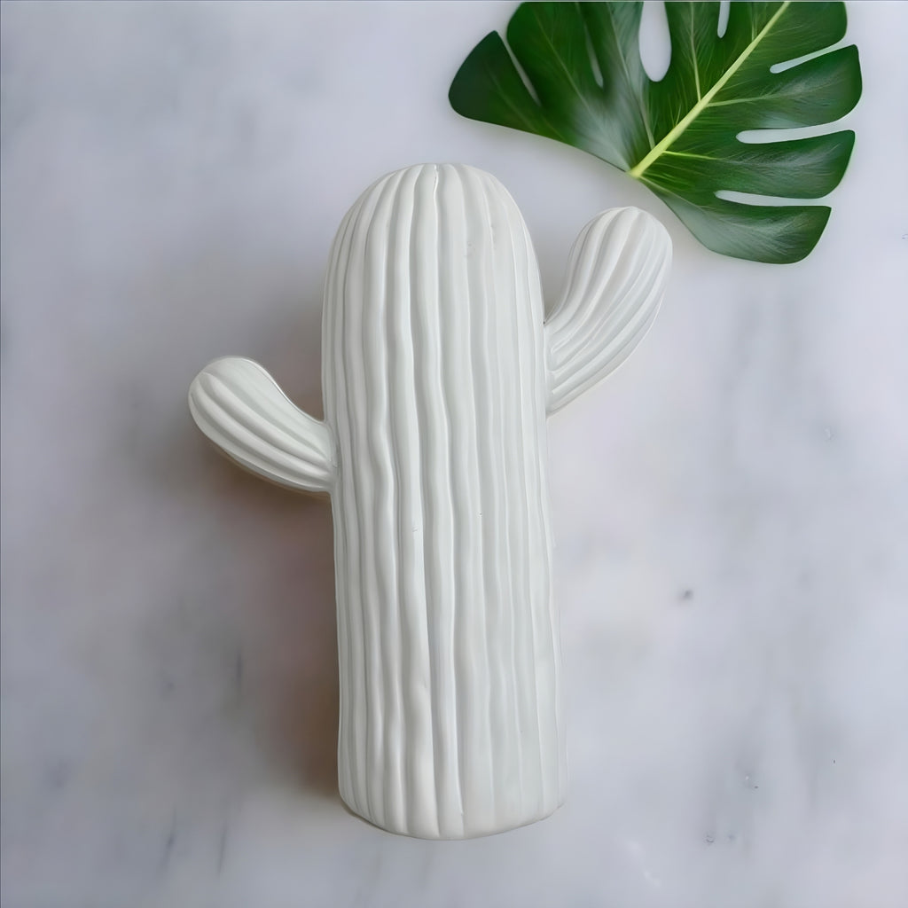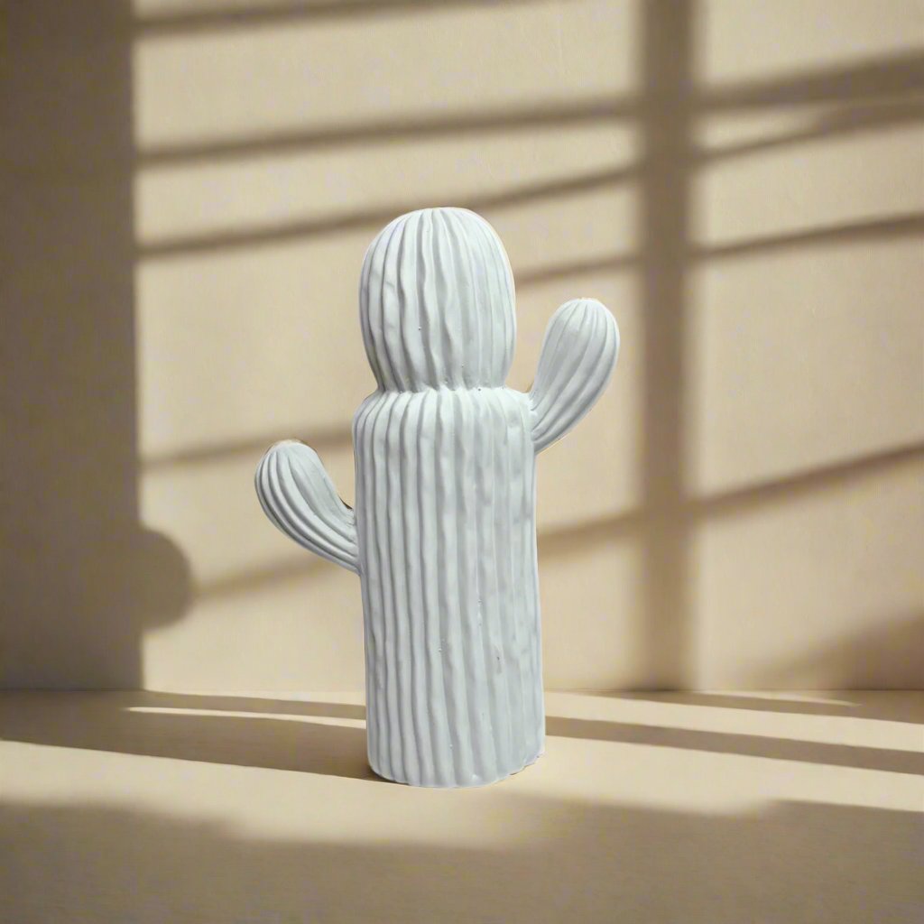 Add a touch of desert charm to your home with our White Cactus Ornament. This beautiful piece of decor adds a unique and stylish touch to any room. Its sleek design and neutral color make it versatile and perfect for any interior aesthetic. Elevate your space with this statement piece.