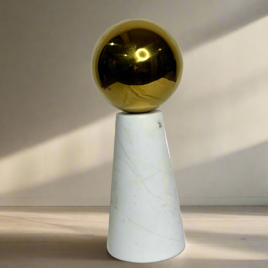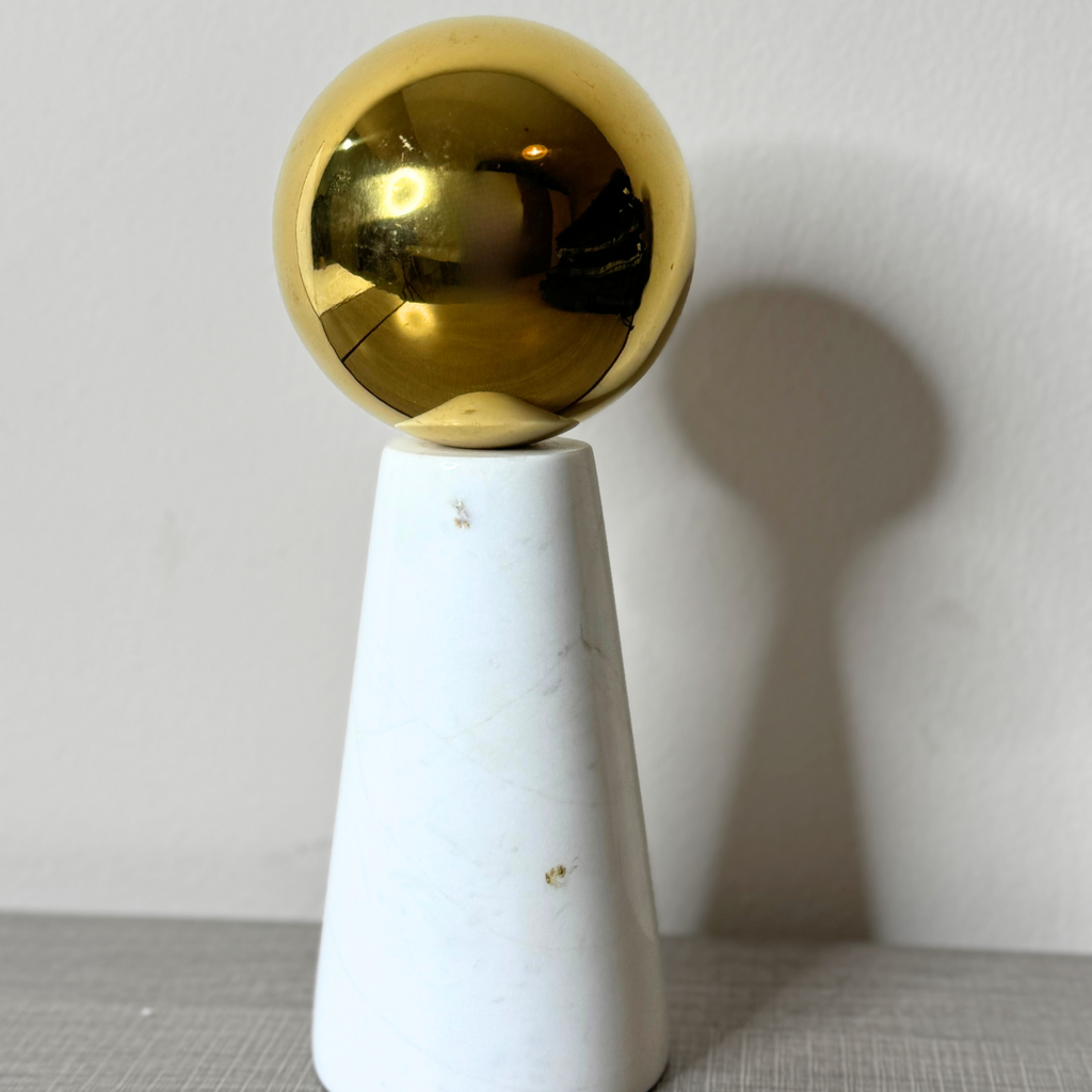This white marble ornament with a gold ball is a simple yet elegant addition to your holiday decor. Its classic design and high-quality materials will add a touch of sophistication to any Christmas tree. The combination of white and gold adds a touch of glamour to your decorations.