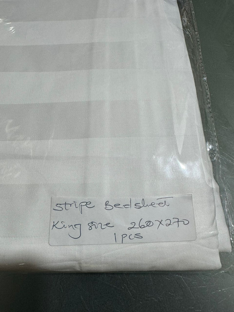 This striped bedsheet in kingsize (260 x 270) will add a touch of modern style to your bedroom. The stripes create a chic, sophisticated look while the generous size ensures ample coverage for a comfortable night's sleep. Upgrade your bedding with this stylish, high-quality sheet.